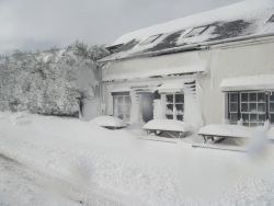 The last heavy snow fall was in early February 2009, recorded in the pictures below. The road was cleared after a few days and most things were back to 'normal' within a week.